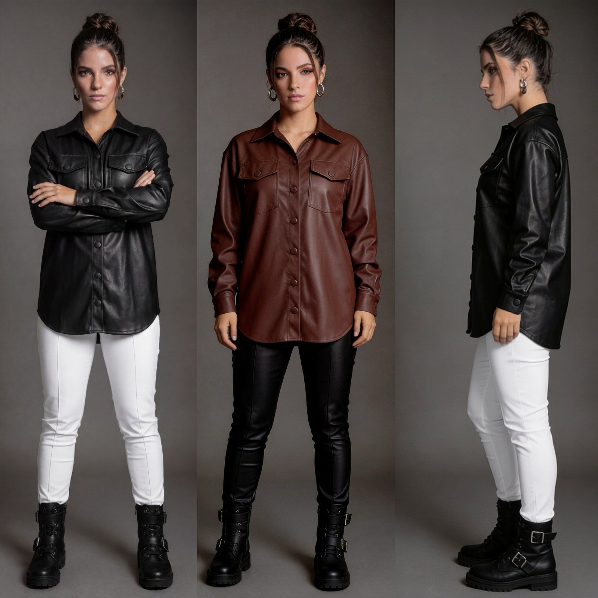 Camisa Manga Longa De Couro