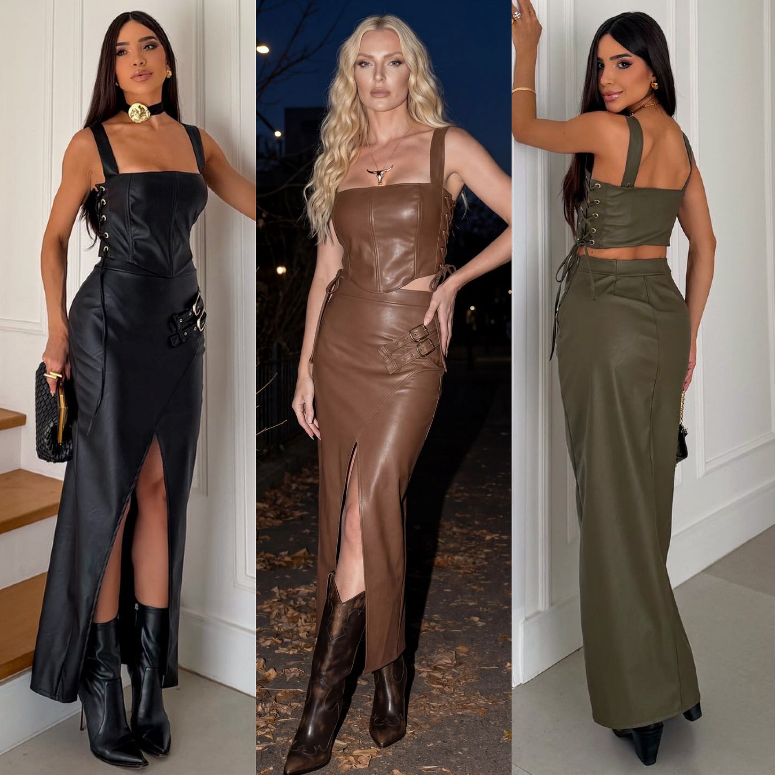 Conjunto Saia & Cropped De Couro eco